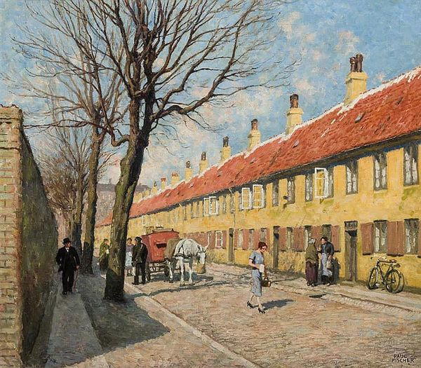 Paul Gustav Fischer (1860–1934) was a Danish painter renowned for his depictions of daily life and landscapes. Born in Copenhagen, he studied at the Royal Danish Academy of Fine Arts, where he developed a distinctive style blending Impressionist techniques with a strong emphasis on color and light.