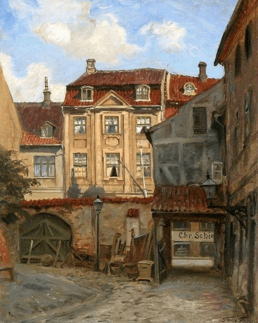 Peter Tom-Petersen (1861–1926) was a distinguished Danish painter and graphic artist, celebrated for his evocative depictions of Copenhagen and its urban landscapes. Born in Thisted, Denmark, he studied at the Royal Danish Academy of Fine Arts and became renowned for his cityscapes that captured the quiet elegance of everyday life in Denmark. His keen eye for architectural detail and ability to imbue his works with extraordinary light and atmosphere set him apart.