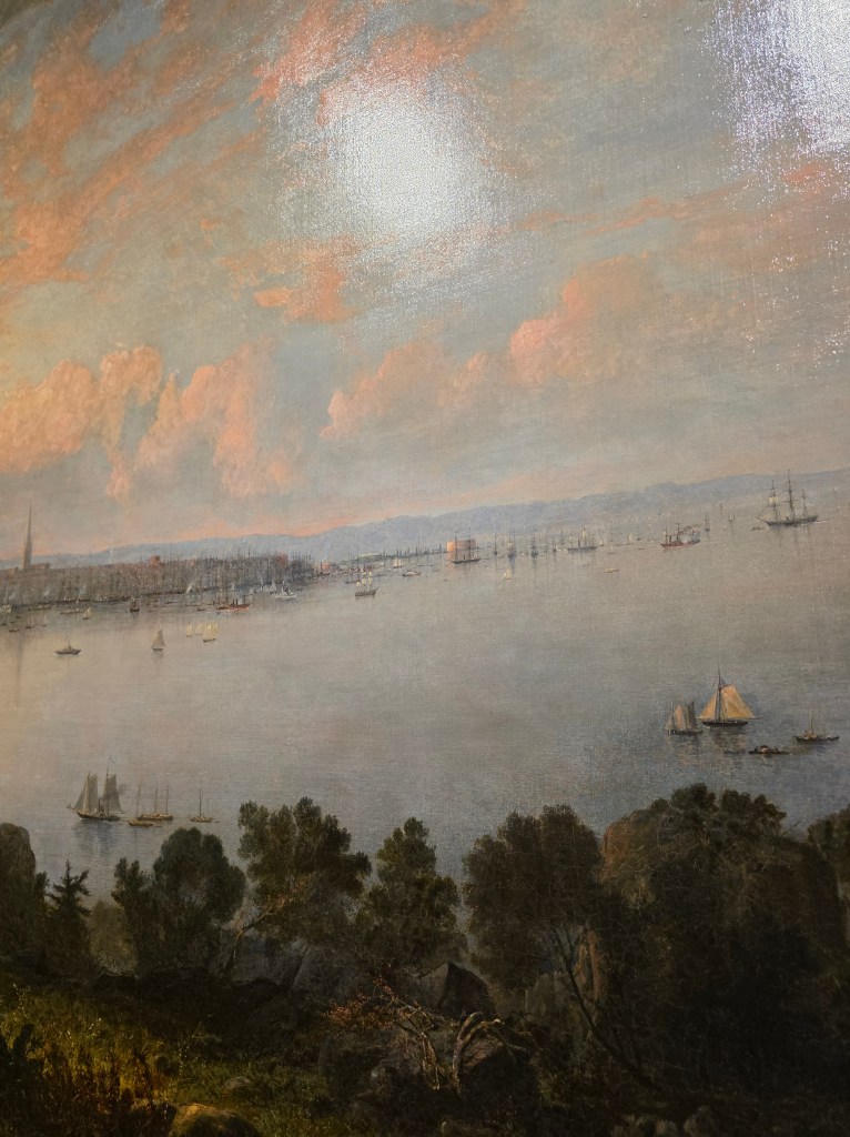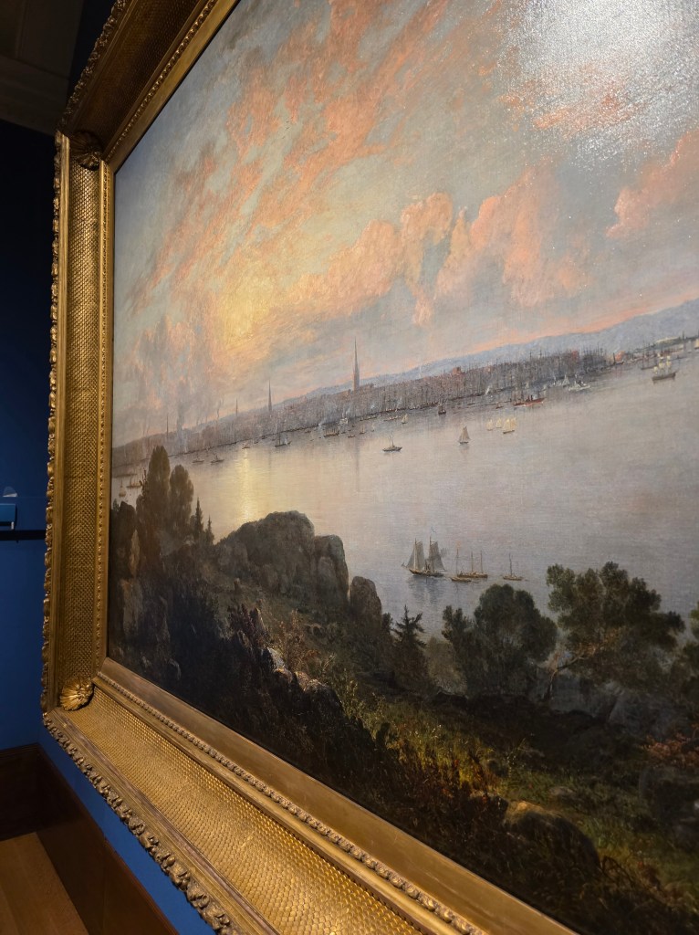 Another gallery opens onto blue-hued seascapes—sailboats cutting through rolling waves. These paintings echo the Edwardian fascination with nature, adventure, and the sea.